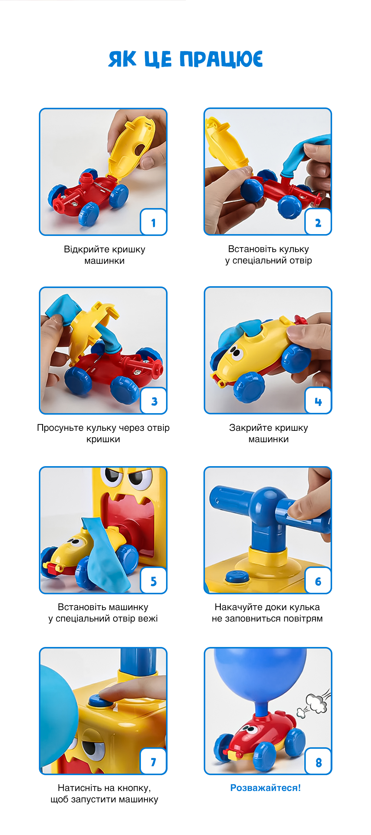 Набір, який розважатиме дітей годинами! Можна організовувати випробування, гонки та проводити час з користю. Отримайте задоволення від гри з повітряними кулями. Не пропустіть можливість подарувати своїй дитині унікальні практичні навички та чудовий настрій.